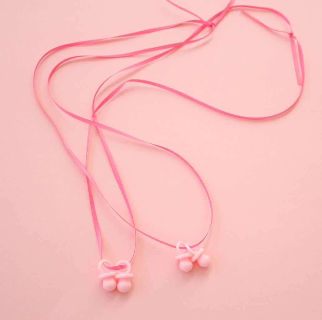 We had two games for the shower guests to play: a necklace game and baby gift bingo. For the necklace game, guests had to be sure not to say the words, “baby,” “babies,” or “twins,” or else their necklace would be taken by another guest! Quite a challenge at a baby shower!